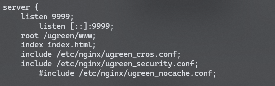 执行 vi /etc/nginx/ugreen.conf 进行编辑注释并保存