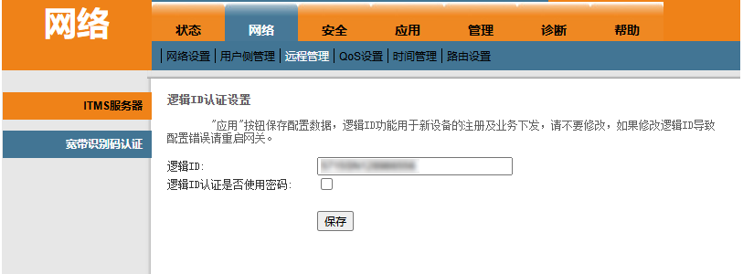 注册光猫: 网络 > 远程管理 > 宽带识别码