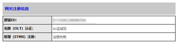 重启后查看首页信息,宽带识别码以及光路(OLT)认证、管理(ITMS)注册是否认证/注册成功