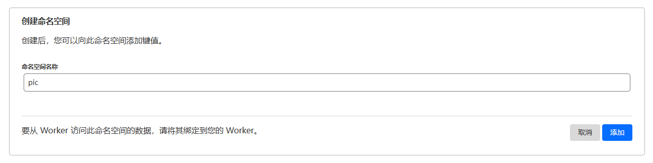 回到 Cloudflare Dashboard > 存储和数据库 > KV > 创建名为pic的KV空间